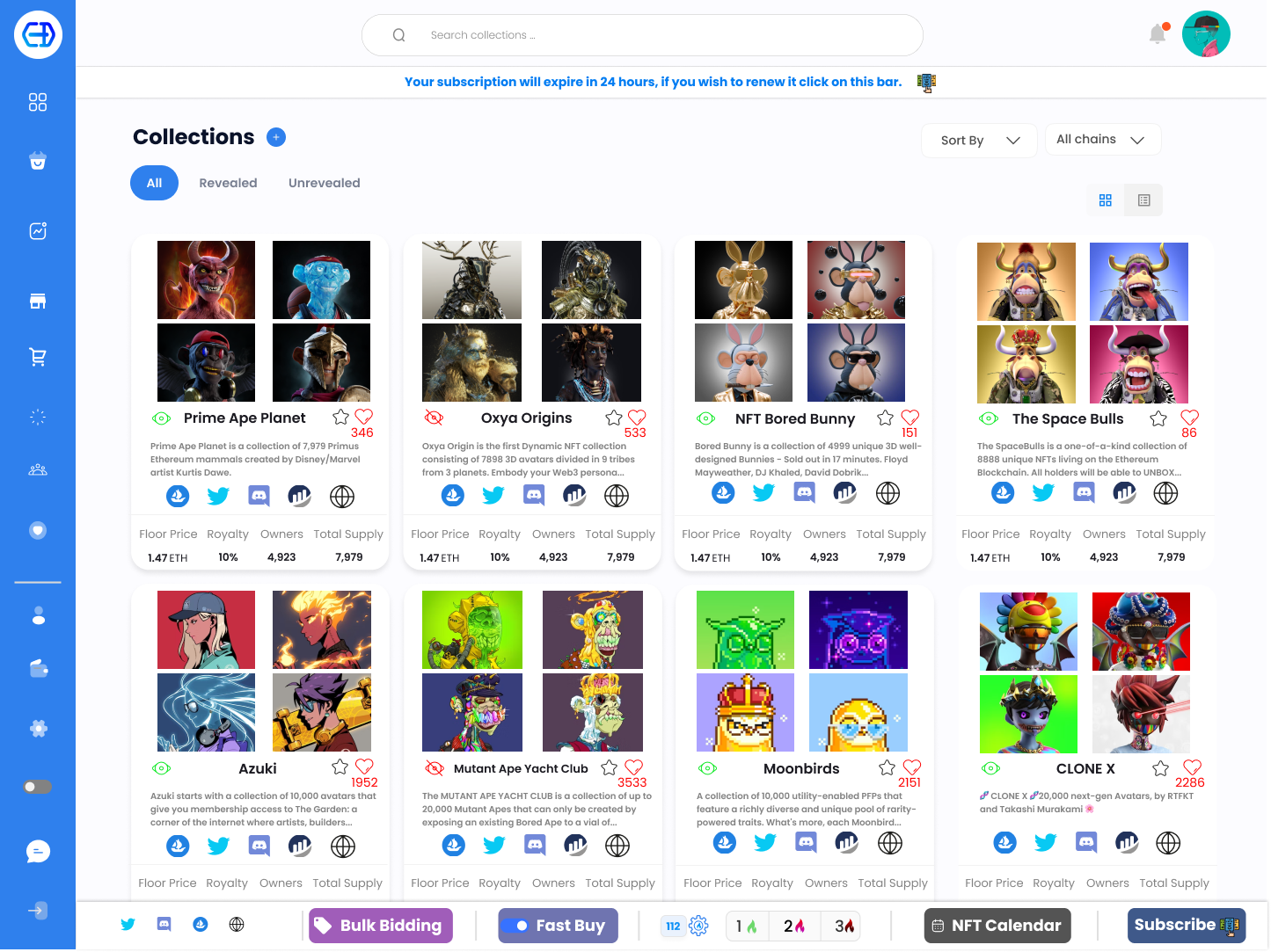 Get access right from the start to a set of features such as Collections, Snipe Rarity Ranks, Upcoming, Trending Tab, Favorites, Upcoming, Bulk Bidding, Quick Buy and Customizable Gas Settings, helping you during your NFT path. The number of features will increase significantly over time.